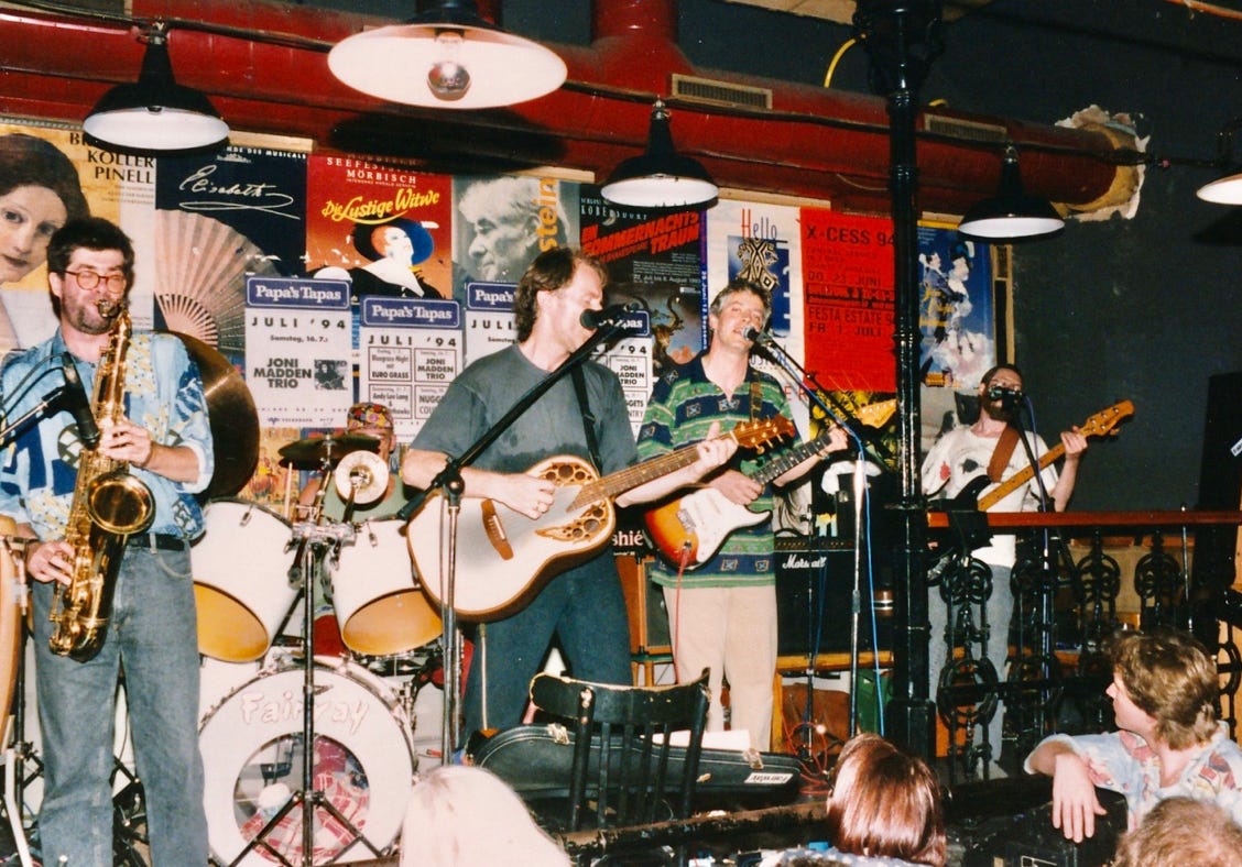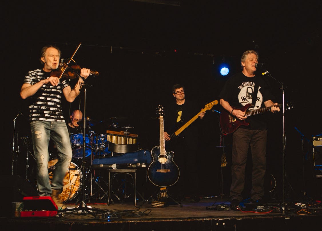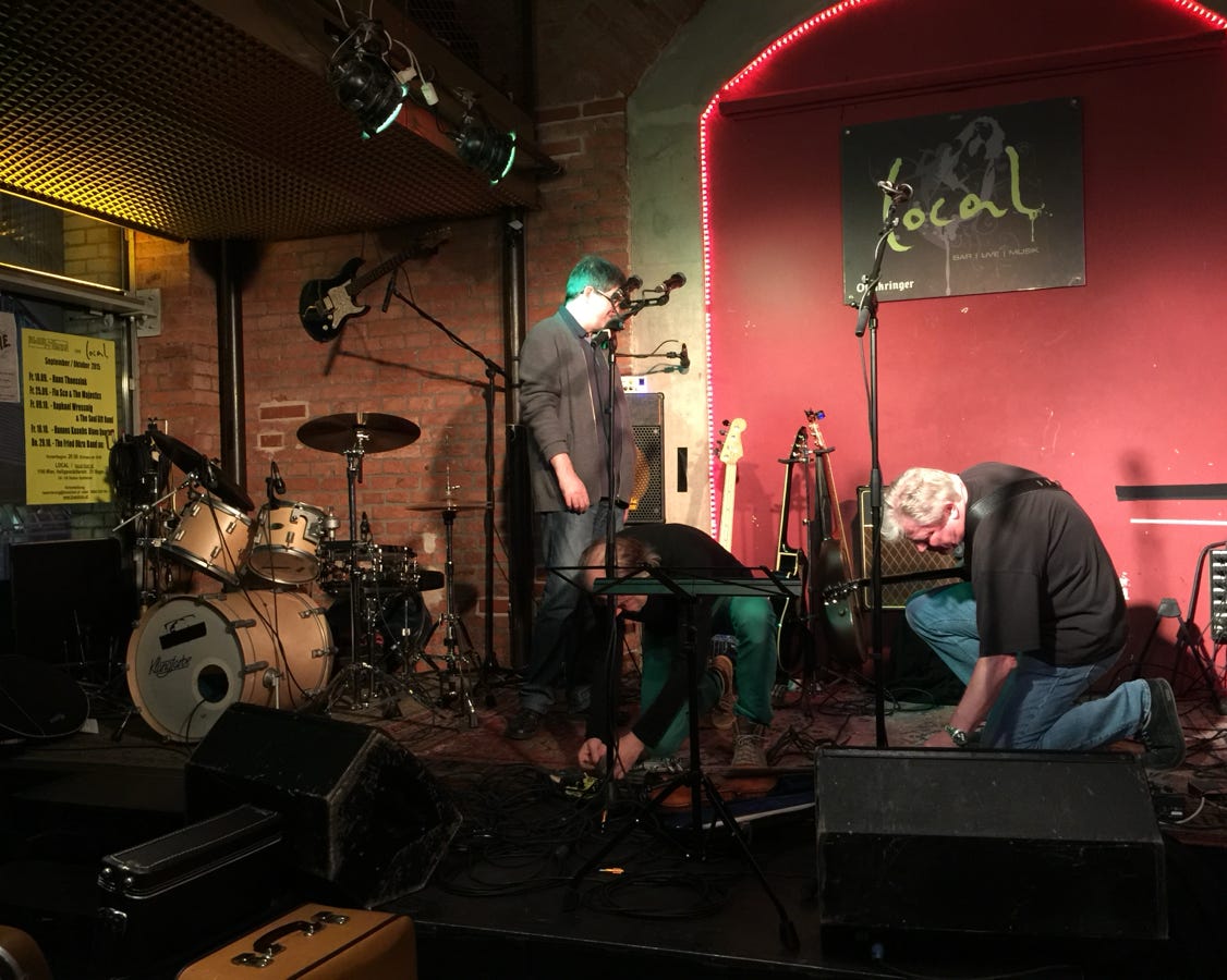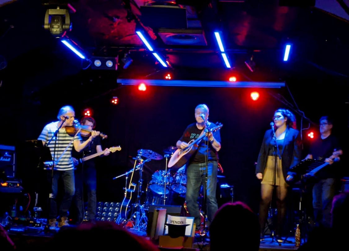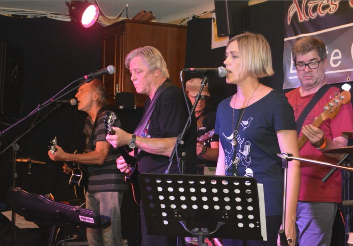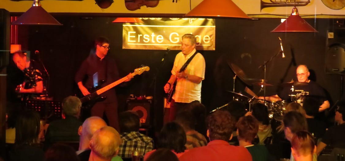 Die bereits in Altersteilzeit (55+) befindliche Formation FAIRWAY zeigt gegen 21h30, dass auch Zahnersatz und Arthritis der urwüchsigen Kraft des Urban Folk keinen Abbruch tun.