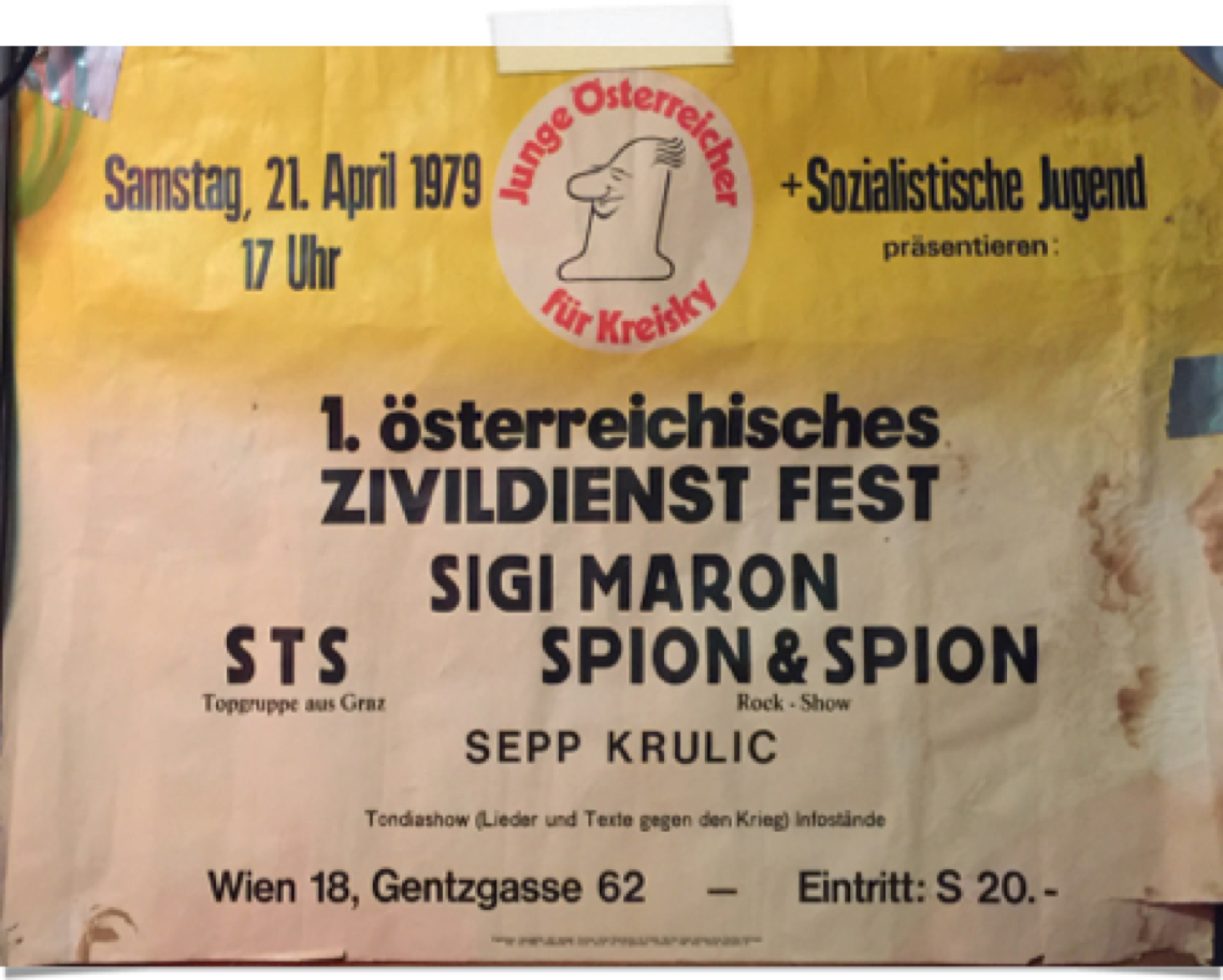 Wir erfuhren davon im April 1979 bei einem gemeinsamen Bier mit STS, die bei einem Zivildienerfest vor uns aufgetreten sind (siehe Plakat).